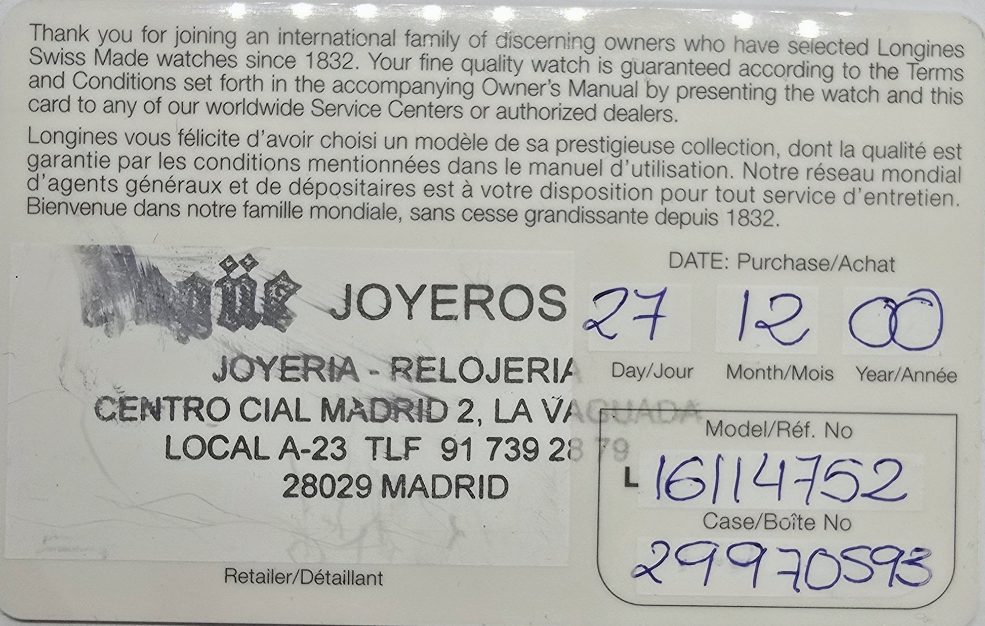 - Detalle Distintivo: Ventana de fecha a las 12, una complicación de diseño histórica de Longines.