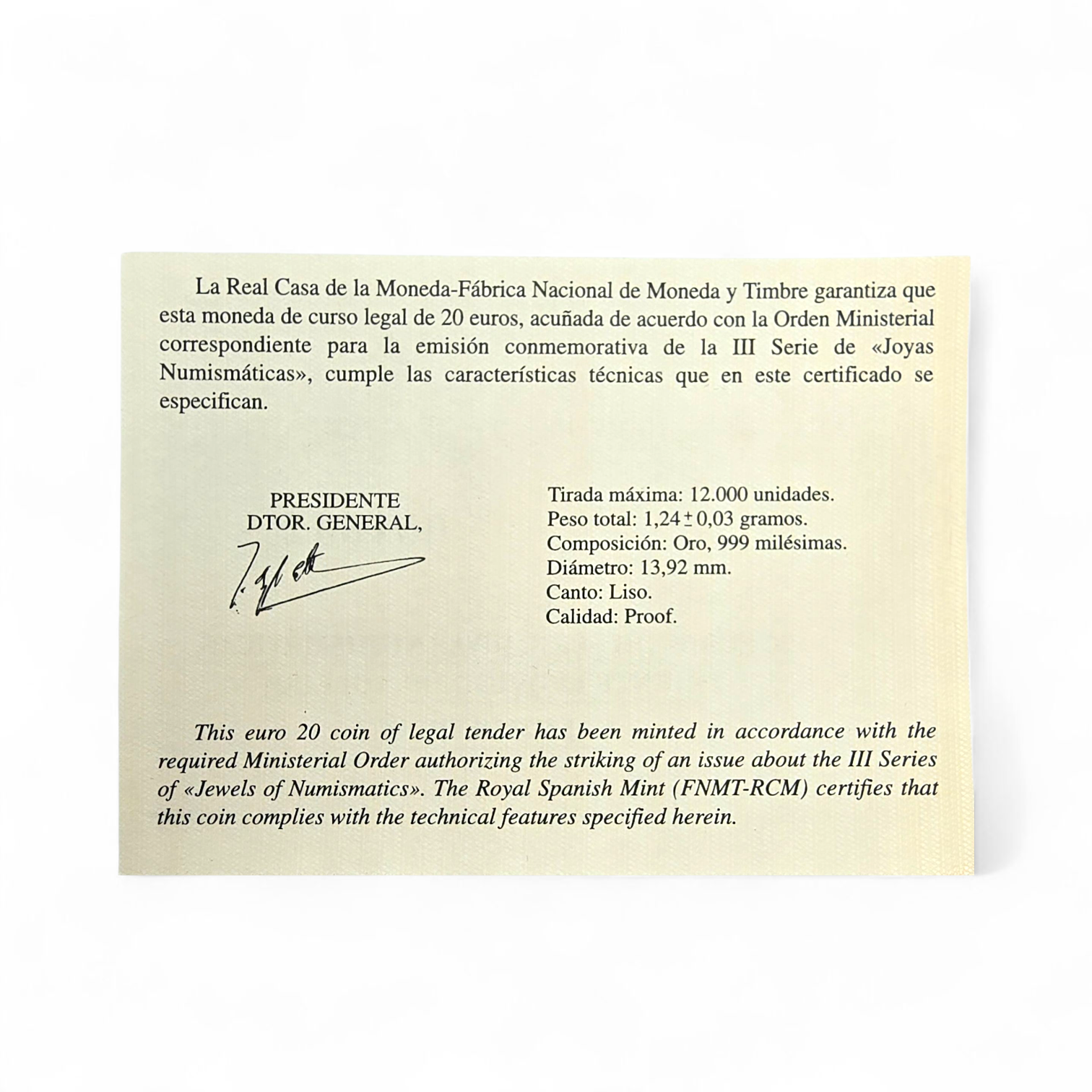 - Valor facial: 20 €.