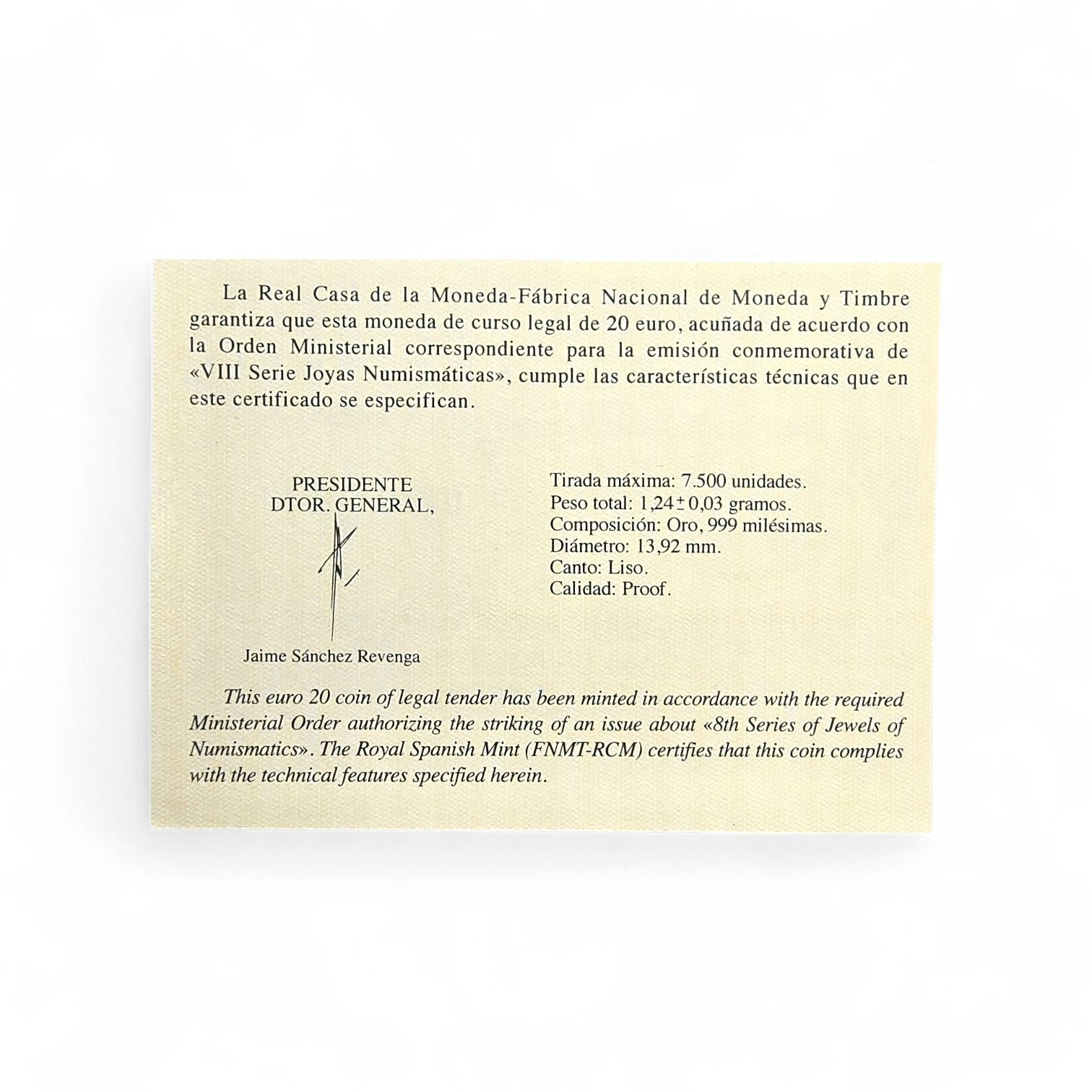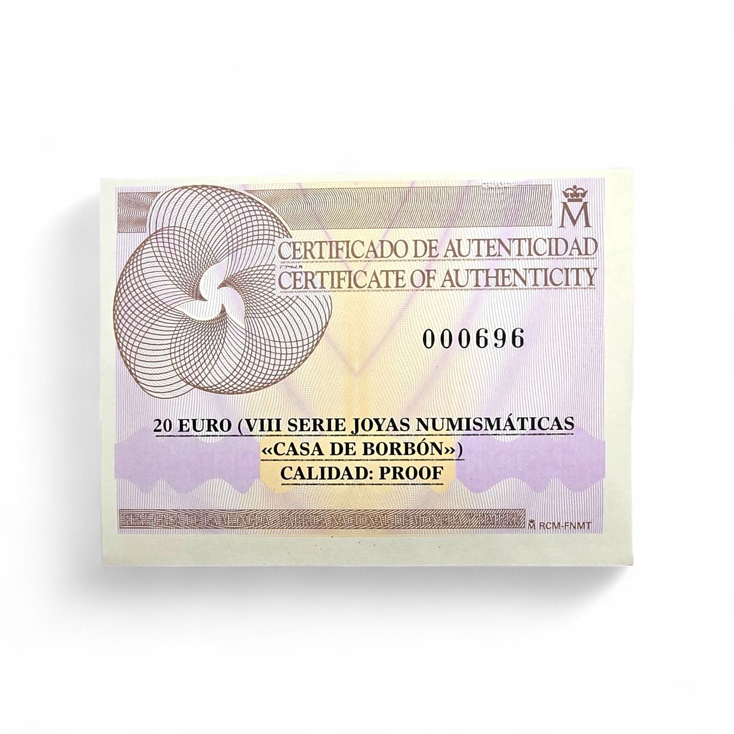 Moneda de 20€ en oro de FNMT - VIII Joyas Numismáticas 2017 - Casa de Borbón