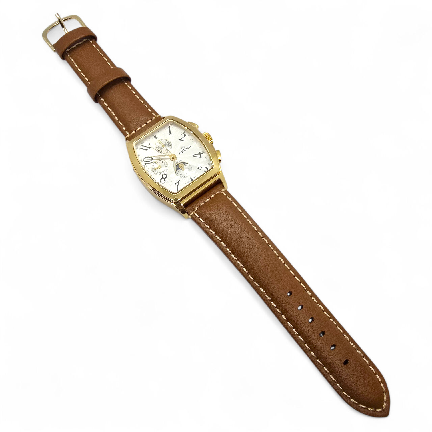 Reloj Delma Klondike Tonneau Cronógrafo Suizo con Fase Lunar Edición Limitada en Oro de 18 Kt